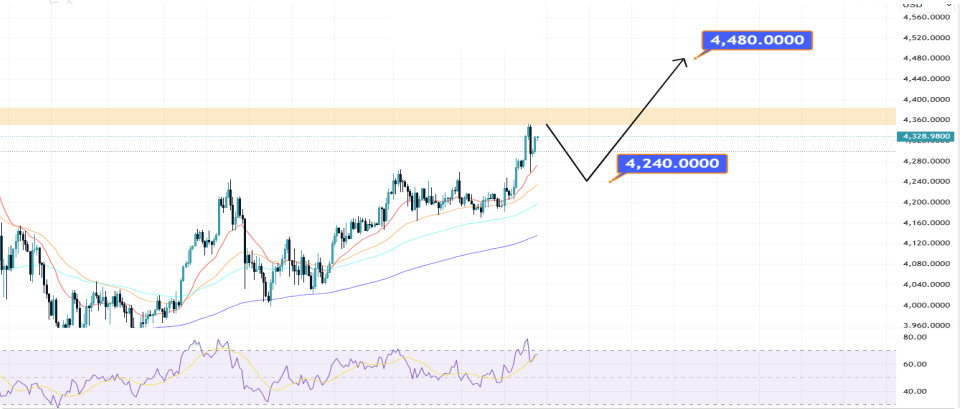 Hiện gía đang di chuyển theo xu hướng tăng giá, hiện giá có dấu hiệu điều chỉnh quanh vùng $4360. Khả năng vào những phiên tuần sau giá có thể giảm nhẹ và sau đó khả năng sẽ tăng trở lại.
